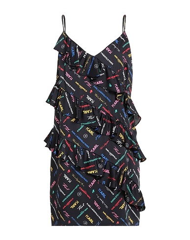 crepe, ruffles, logo design, deep neckline, sleeveless, fully lined, zipper closure, no pockets, flared dress, small sized