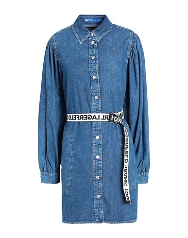 denim, belt, gathered, plain colour, classic collar, medium wash, long sleeves, snap button cuffs, unlined, snap fastenings, multipockets, shirt dress
