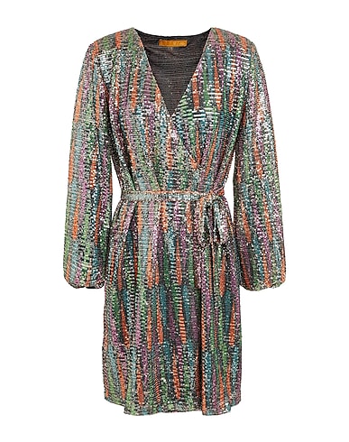 tulle, sequins, belt, multicolour, v-neck, long sleeves, shoulder pads, fully lined, snap fastenings, without pockets, stretch, hand wash or dry clean, do not bleach, do not tumble dry, sequinned dress