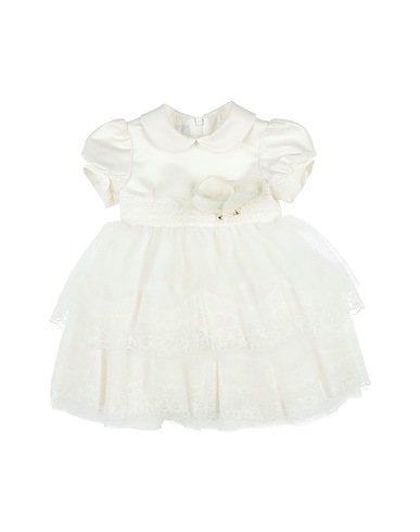 satin, tulle, tiered, brooch, plain colour with appliqués, peter pan collar, short sleeves, fully lined, zip fastening, without pockets, hand wash or dry clean, do not bleach, do not tumble dry