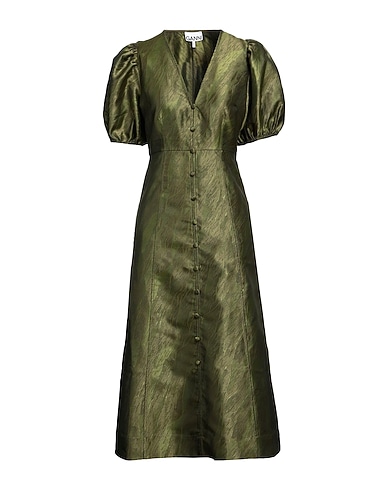 GANNI Midi dress VERDE MILITARE 60% Recycled polyester, 40% Polyester