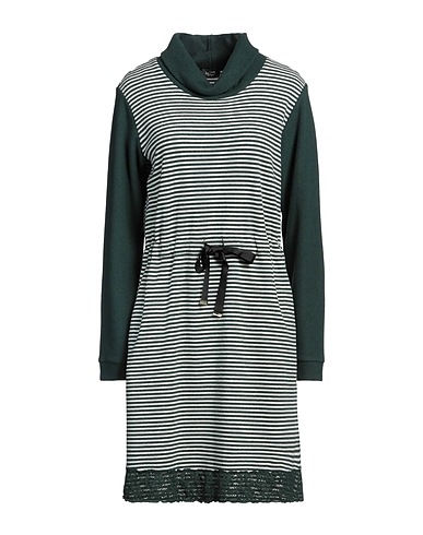 dress, polar fleece, striped, lace trims, turtleneck, long sleeves, ribbed cuffs, unlined, slit pockets, machine wash or dry clean, do not bleach, do not tumble dry