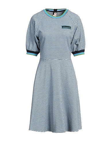 flared dress, knitted, lightweight knit, checked, brand logo, crewneck, short sleeves, unlined, zip fastening, without pockets, stretch, dry clean, do not bleach, do not tumble dry