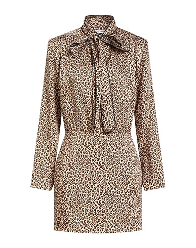 bodycon dress, twill, leopard-print, gathered, piped trims, bow-tie neckline, long sleeves, shoulder pads, unlined, zip fastening, button fastenings, machine wash, do not bleach, do not tumble dry