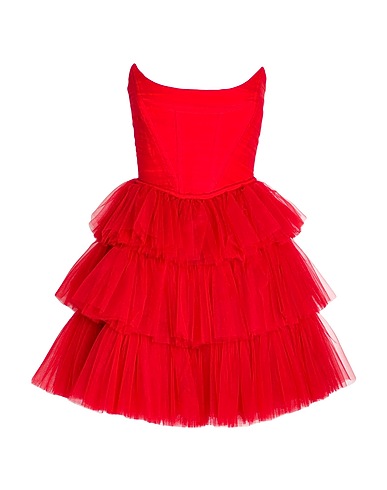 flared dress, tulle, plain colour, tiered, pleated, deep neckline, sleeveless, internal boning, zip fastening, stretch, dry clean, do not bleach, do not tumble dry, do not iron