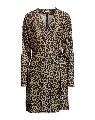 wrap dress, jersey, metallic, stretchy fabric, leopard-print, brand logo, v-neck, long sleeves, partially lined, tie fastening, hand wash or dry clean, do not bleach, do not tumble dry