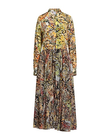 shirt dress, satin, multicolour, pleated, classic collar, long sleeves, buttoned cuffs, partially lined, button fastenings, without pockets, hand wash or dry clean, do not bleach, do not tumble dry