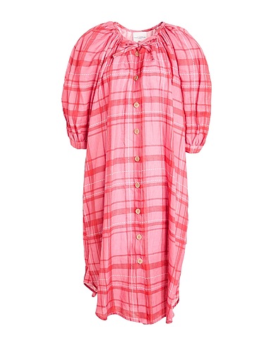 shirt dress, linen, tartan pattern, no appliqués, bow-tie neckline, 3/4 length sleeves, raglan sleeves, unlined, button fastenings, welt pocket, dry clean, do not bleach, do not tumble dry, planning a weekend getaway or beach holiday? this is the effortless summer style you need