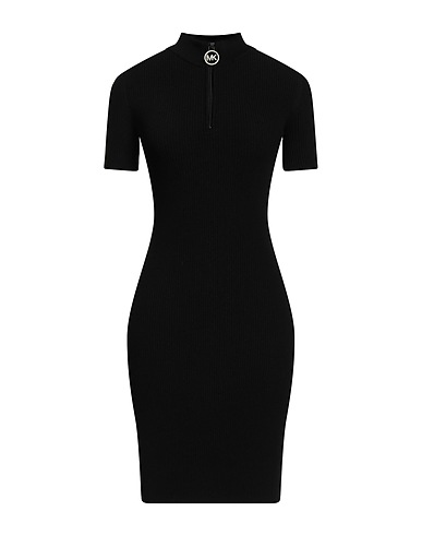 bodycon dress, ribbed-knit, jacquard-knit, lightweight knit, stretchy fabric, multicolour, brand logo, half-zip neckline, short sleeves, unlined, without pockets, machine wash or dry clean, do not tumble dry