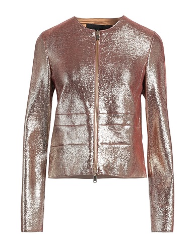 leather, laminated effect, no appliqués, two-tone, crewneck, single-breasted , long sleeves, unlined, zipper closure, no pockets, contains non-textile parts of animal origin, generic outerwear