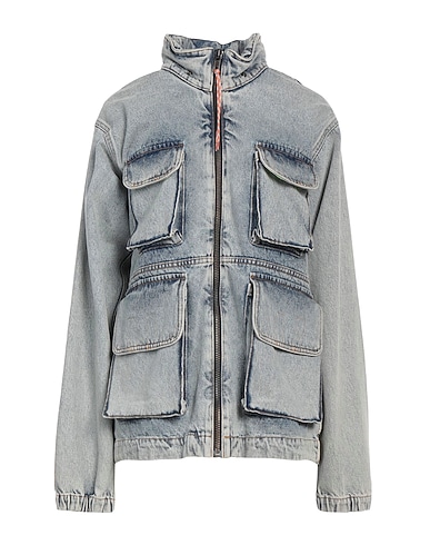 denim, no appliqués, plain colour with print, light wash, turtleneck, double-breasted, long sleeves, unlined, zip fastening, flap pockets, machine wash, do not bleach, do not tumble dry, denim jacket