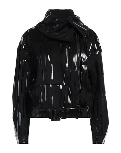 wool, coated fabric, no appliqués, plain colour with print, turtleneck, single-breasted , long sleeves, fully lined, zip fastening, belted waistline, multipockets, dry clean, do not bleach, do not tumble dry, biker jacket
