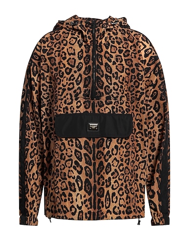 windbreaker, shell, leopard-print, brand logo, side seam stripes, hooded, single-breasted , long sleeves, unlined, zip fastening, kangaroo pocket, drawstring hem, machine wash or dry clean, do not bleach, do not tumble dry