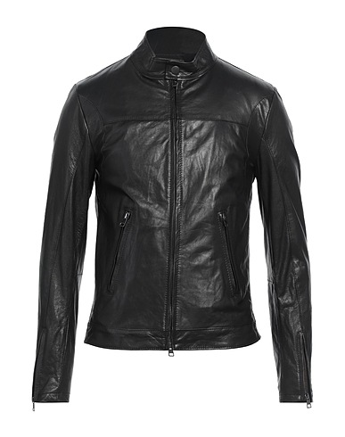 biker jacket, leather, plain colour, no appliqués, turtleneck, single-breasted , long sleeves, zipped cuffs, fully lined, zip fastening, multipockets, contains non-textile parts of animal origin, do not wash, do not bleach, do not tumble dry, do not iron, this brand runs small