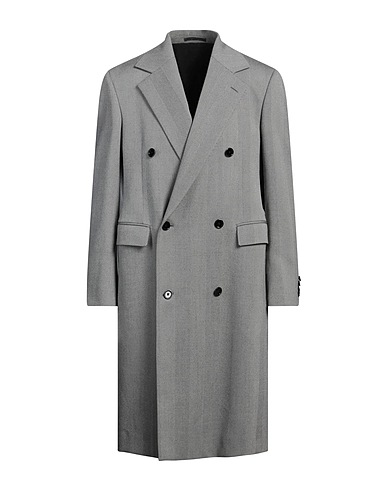 overcoat, wool, herringbone, no appliqués, lapel collar, long sleeves, buttoned cuffs, fully lined, button fastenings, flap pockets, dry clean, do not tumble dry