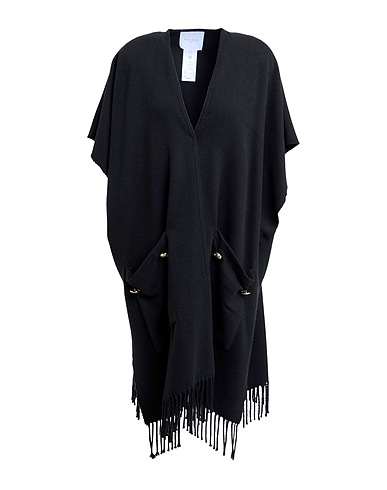 wrap cape, flannel, plain colour with appliqués, button-embellished, deep neckline, unlined, multipockets, machine wash or dry clean, do not bleach, do not tumble dry