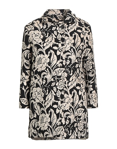 single-breasted coat, brocade, floral-print, no appliqués, classic collar, 3/4 length sleeves, lightly padded, snap fastenings, multipockets, dry clean, do not bleach, do not tumble dry