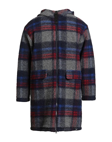 single-breasted coat, flannel, brand logo, tartan pattern, hooded, long sleeves, fully lined, zip fastening, flap pockets, dry clean, do not bleach, do not tumble dry