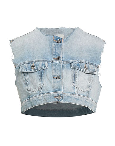 denim gilet, denim, faded, no appliqués, plain colour, medium wash, crewneck, sleeveless, unlined, button fastenings, two chest pockets, machine wash or dry clean, do not bleach, do not tumble dry