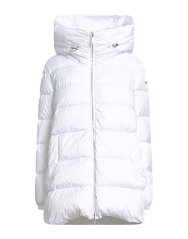 down coat, shell, brand logo, plain colour, hooded, long sleeves, goose down interior, heavyweight padding, zip fastening, slit pockets, contains non-textile parts of animal origin, machine wash or dry clean, do not bleach, do not tumble dry