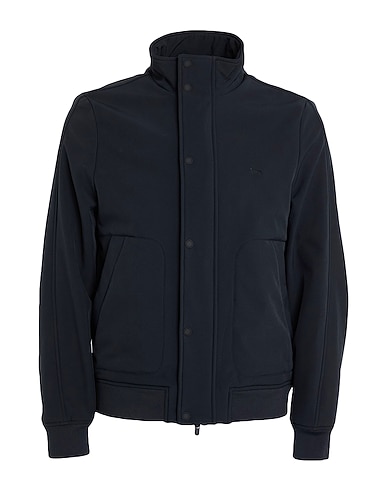 casual jacket, shell, stretchy fabric, embroidered logo, knitted trims, plain colour, turtleneck, long sleeves, unlined, polar fleece lining, snap fastenings, slit pockets, machine wash or dry clean, do not bleach, do not tumble dry
