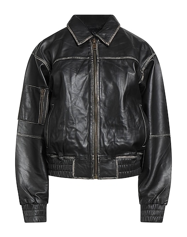 casual jacket, leather, no appliqués, plain colour, long sleeves, fully lined, zip fastening, slit pockets, contains non-textile parts of animal origin, specialist clean or dry clean, do not tumble dry