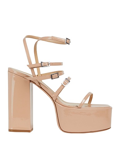 varnished effect, no appliqués, solid colour, leather backing, buckle fastening, round toeline, geometric heel, covered heel, leather sole, contains non-textile parts of animal origin, gladiator sandals