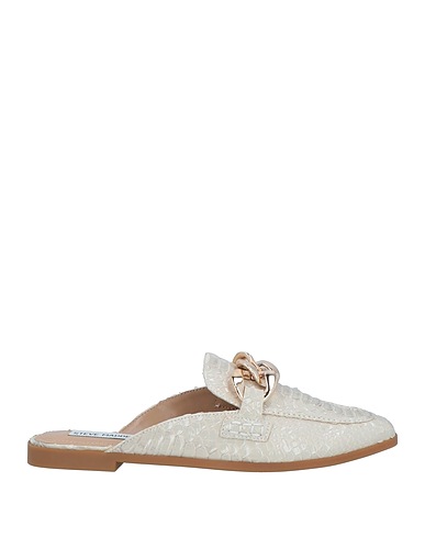 coated fabric, metal applications, plain colour with appliqués, leather lining, round toe, flat, leather sole, contains non-textile parts of animal origin, mules