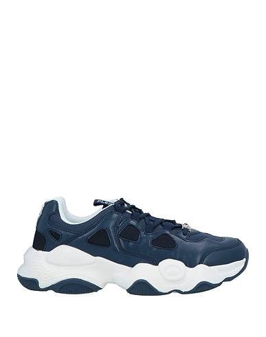 coated fabric, techno fabric, brand logo, solid colour, fabric inner, laces, round toeline, flat, rubber sole, chunky trainers