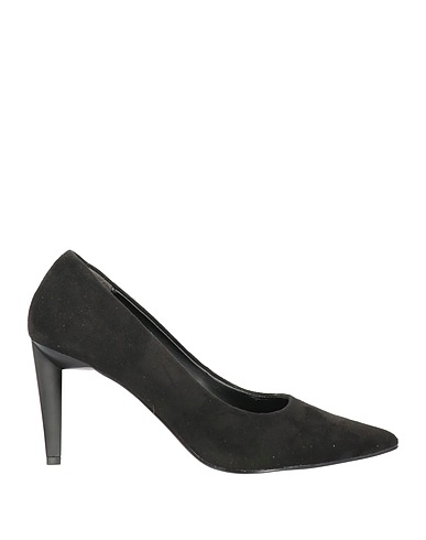 stilettos, suede-effect fabric, plain colour, no appliqués, lined interior, pointed toe, geometric heel, rubber sole, large sized