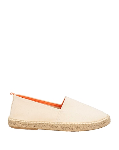 canvas, brand logo, plain colour, leather lining, round toeline, flat, rubber cleated sole, contains non-textile parts of animal origin, closed-toe espadrilles