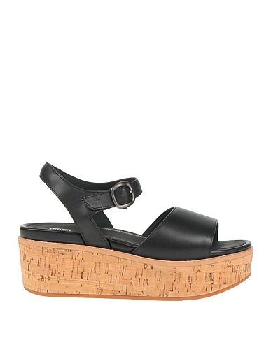 sandals, leather, plain colour, no appliqués, buckle fastening, round toe, wedge, rubber sole, leather lining, contains non-textile parts of animal origin