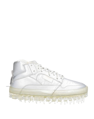 leather, laminated effect, brand logo, two-tone, technical fabric inner, laces, round toeline, flat, pebbled sole, contains non-textile parts of animal origin, high-top trainers