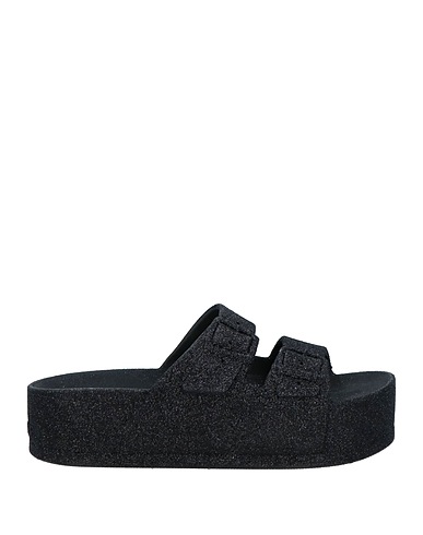 rubber, glitter, plain colour, rubber lining, buckle fastening, round toeline, flat, flatform, sandals