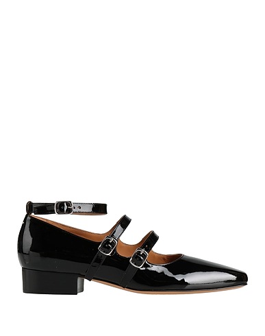 patent leather, no appliqués, plain colour, leather lining, buckle-fastening ankle strap, square toe, flat, leather/rubber sole, contains non-textile parts of animal origin, mary jane flats