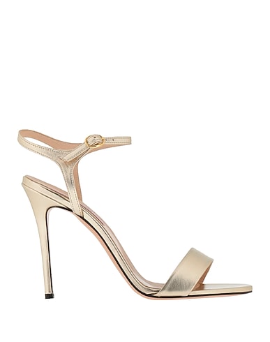 leather, metallic, no appliqués, plain colour, leather lining, buckle-fastening ankle strap, round toe, spike heel, covered heel, leather sole, contains non-textile parts of animal origin, ankle strap sandals