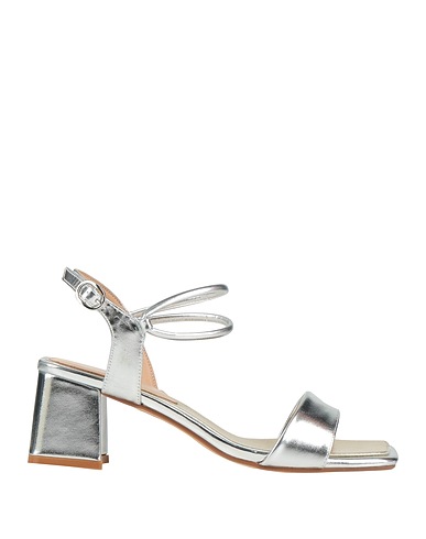 coated fabric, metallic, no appliqués, plain colour, fully lined, buckle-fastening ankle strap, square toe, square heel, covered heel, rubber sole, ankle strap sandals