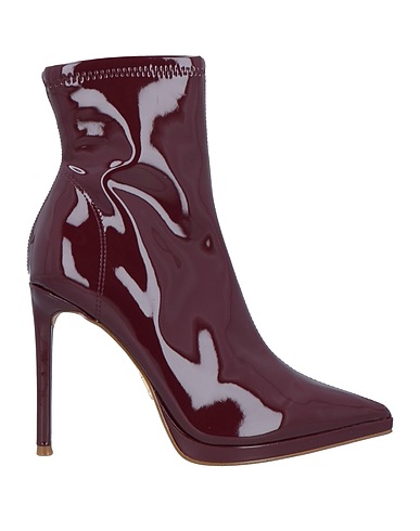 coated fabric, patent-effect, no appliqués, plain colour, technical fabric inner, zip fastening, pointed toe, spike heel, rubber sole, calf boots