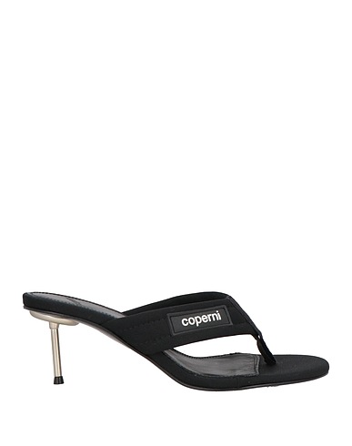 thong sandals, scuba, plain colour, brand logo, fabric inner, round toe, spike heel, leather sole, contains non-textile parts of animal origin