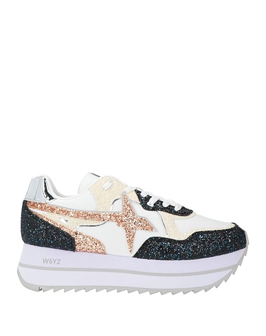 low-top trainers, shell, synthetic material, glittered, metallic, multicolour, brand logo, technical fabric inner, lace-up, round toe, flat, flatform