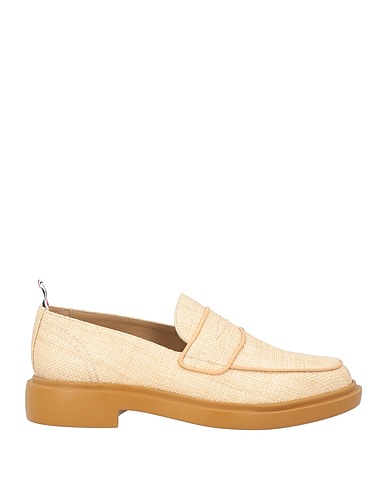 raffia, piped trims, plain colour with appliqués, leather lining, round toe, square heel, rubber sole, contains non-textile parts of animal origin, loafers
