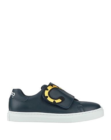low-top trainers, leather, embroidered, brand logo, plain colour with appliqués, fully lined, velcro fastening, round toe, flat, rubber cleated sole, contains non-textile parts of animal origin