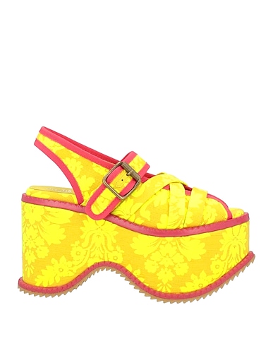 ankle strap sandals, canvas, no appliqués, floral-print, leather lining, buckle fastening, round toe, wedge heel, rubber cleated sole, contains non-textile parts of animal origin