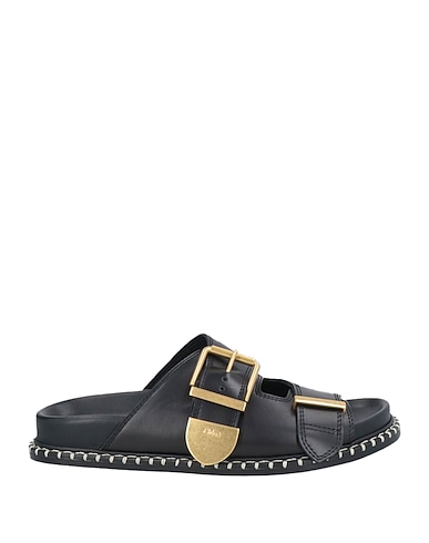 technical sandals, leather, plain colour, brand logo, leather lining, buckle fastening, round toe, flat, rubber sole, contains non-textile parts of animal origin