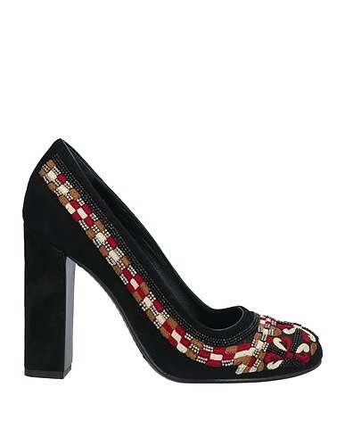 pumps, suede, beads, embroidered, multicolour, leather lining, round toe, square heel, covered heel, leather/rubber sole, contains non-textile parts of animal origin