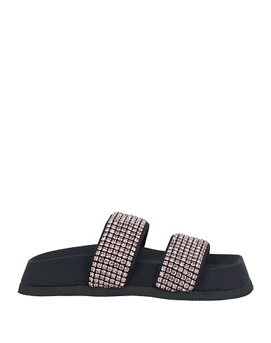 sandals, woven, crystals, plain colour with appliqués, fabric inner, square toe, flat, rubber sole