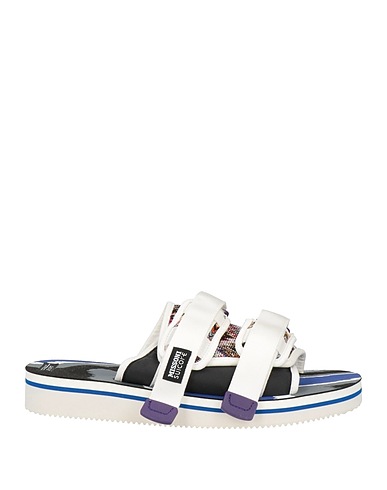 slide sandals, shell, knitted, multicolour, brand logo, fabric inner, velcro fastening, round toe, flat, rubber sole
