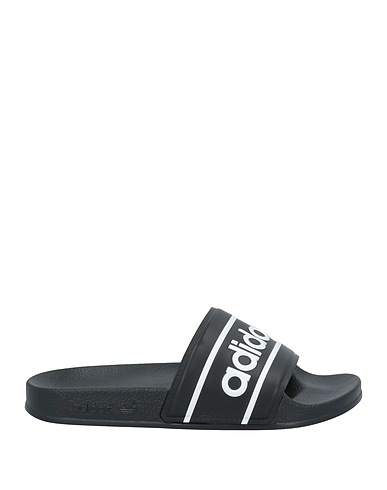 pool slides, rubber, two-tone, brand logo, rubber lining, round toe, flat, rubber cleated sole