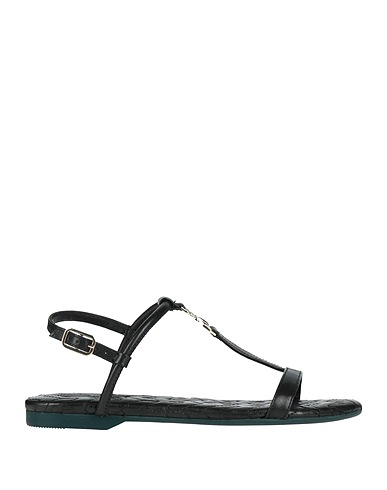 ankle strap sandals, leather, plain colour with appliqués, brand logo, leather lining, buckle-fastening ankle strap, round toe, flat, rubber sole, contains non-textile parts of animal origin