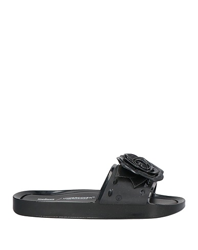 pool slides, rubber, plain colour with appliqués, floral appliqués, rubber lining, round toe, flat, rubber cleated sole
